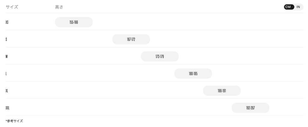 ↑ ORBEA サイズガイド