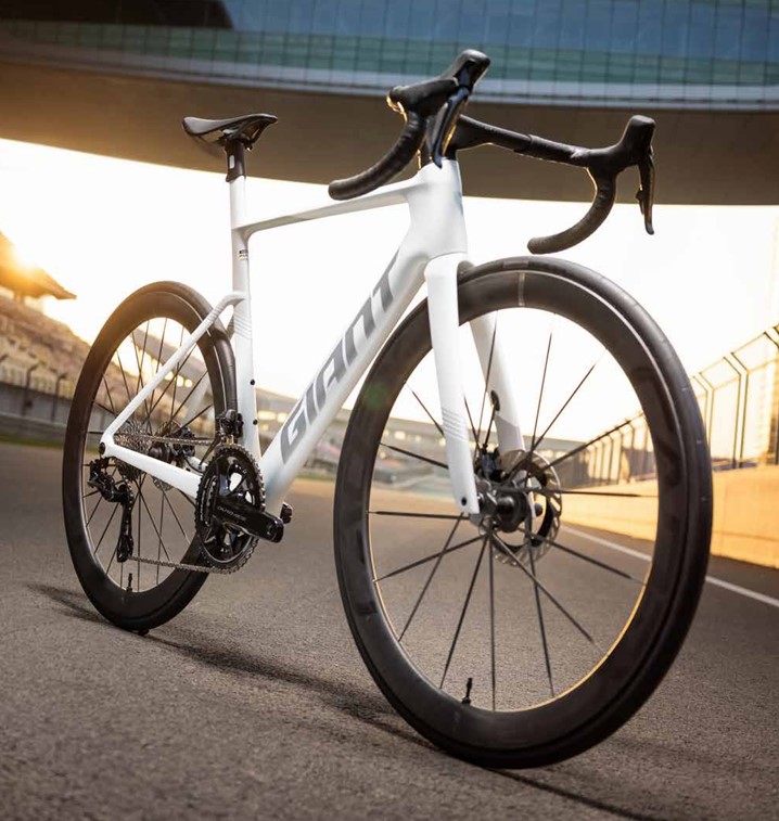 • おすすめポイント:シートポストが別体式のため、遠征時のパッキング(輪行や車載)やサドル高の微調整が容易です 。実用性とトップクラスの走りを両立させたい実業団レーサーやシリアスなホビーレーサーに最もおすすめのパッケージです SLグレードとの最大の違いはシートポストで別体式のフルカーボンシートポスト(Vector Seatpost)を採用しています 。ホイールは50mmハイトのカーボンホイール、GIANT SLR 50 WheelSystemを搭載
