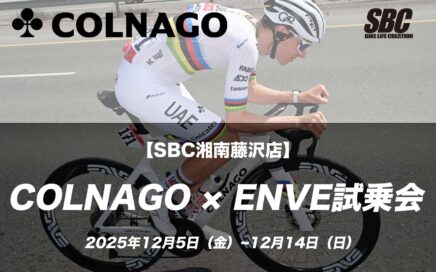 2025年12月5日(金)から12月14日(日)までの10日間、SBC湘南藤沢店にて、COLNAGOの最新ロードバイクと、高性能カーボンホイールで知られるENVEのホイールセットを同時に試せる特別な合同試乗会を開催しま […]